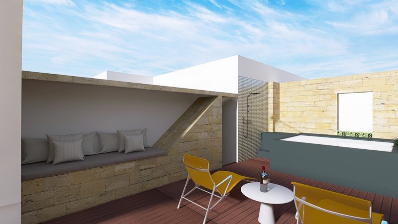 Three intimate suites in a restored 18th-century palazzo. Star vaults, original tufo, private terraces. The flagship: a rooftop bath overlooking the centro storico.
